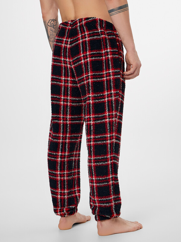 Комплект состоит из джемпера и брюк. Комплект мужской из трикотажного полотна с меховым ворсом 280 гр/м2. Джемпер свободного силуэта. Горловина округлой формы, обработана обтачкой из основного полотна. Рукава втачные. Нижние срезы обработны швом в подгибку на двухигольной плоскошовной машине. Брюки свободного силуэта, с классической линией талии. Пояс цельнокроенный с эластичной тесьмой внутри 30 мм. В боковых швах обработаны карманы. Нижние срезы брюк обработаны швом в подгибку с эластичной тесьмой внутри 30 мм.
