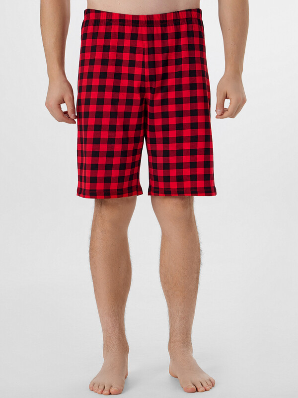Шорты прямые с боковыми швами. Пояс цельнокроеный с эластичной тесьмой внутри. Нижние срезы обработаны швом вподгиб.