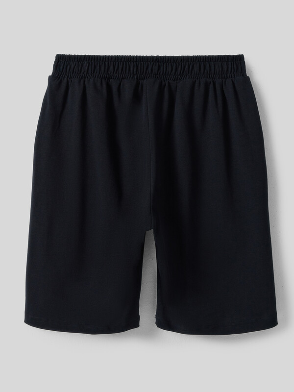 Шорты свободного силуэта. Длиной до колен. Пояс отрезной с эластичной тесьмой внутри.На деталях переда карманы с отрезным бочком. Нижние срезы шорт обработаны швом вподгибку.