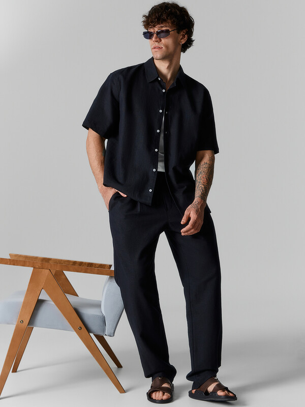 Сорочка верхняя мужская прямого силуэта из ткани, длиной до середины бедер. Рукава короткие втачные.