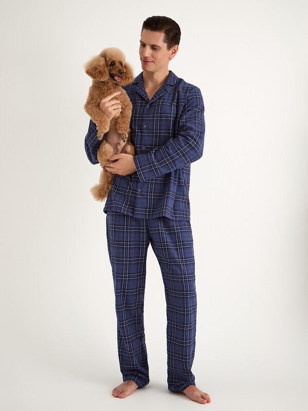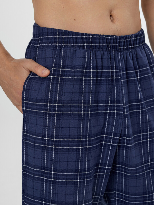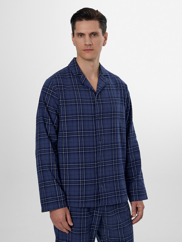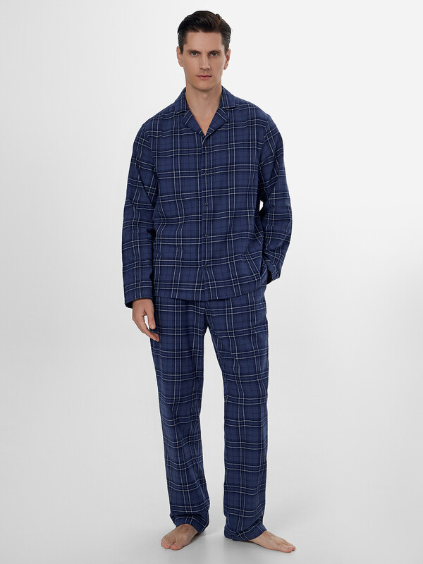 Доминантой дизайна выступает стильная клетка, а тонкое сочетание с полоской придает комплекту особый шарм и визуальную глубину. Мягкая дышащая ткань обеспечивает идеальный микроклимат, делая этот комплект прекрасным выбором для расслабленного вечера или полноценного ночного отдыха в прохладный сезон.