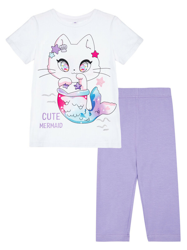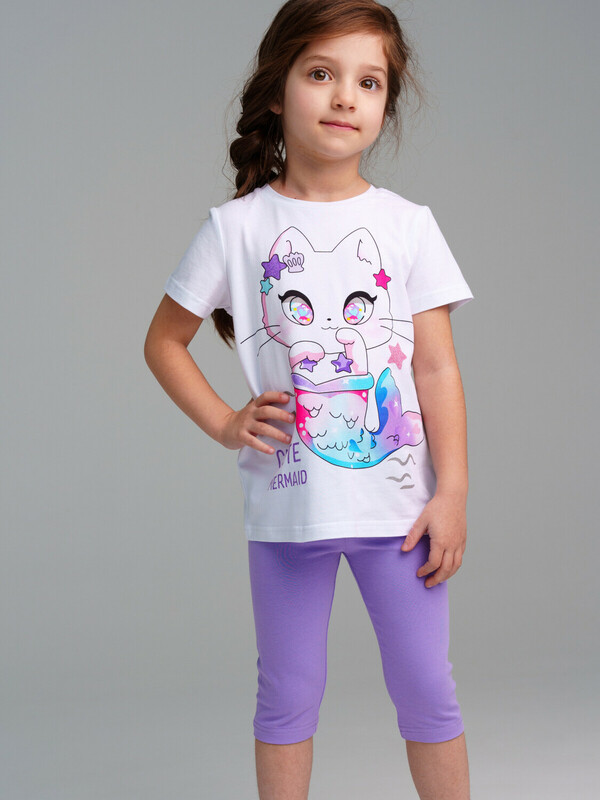 Комплект: футболка regular fit и укороченные легинсы из качественного эластичного и приятного на ощупь трикотажа. Эластичный пояс. Высокое содержание хлопка 95%. Благодаря наличию эластана в составе ткани изделие держит форму и меньше мнется.