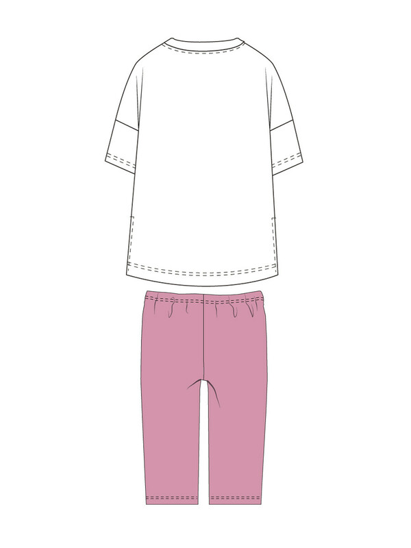Пижама: футболка oversize, брюки с высоким содержанием хлопка. Благодаря наличию эластана в составе ткани, изделие проще в уходе и держит форму. Брюки классического прямого кроя. Эластичный пояс с тесьмой позволяет легко надевать брюки и утягивать до комфортной посадки.