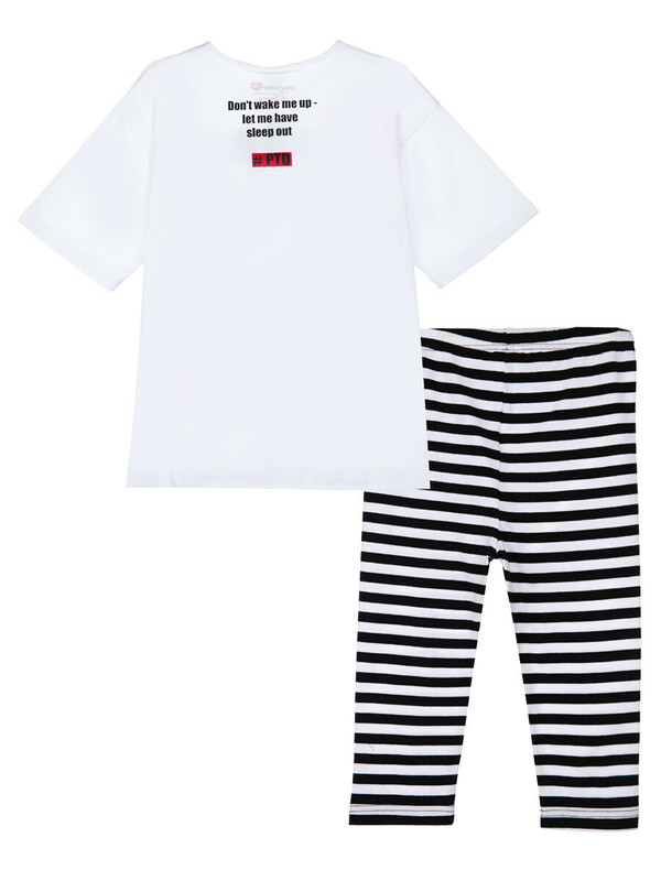 Комплект трикотажный для девочек: фуфайка (футболка), брюки (легинсы) (164, белый,Черный,красный)(PlayToday)