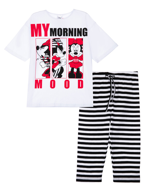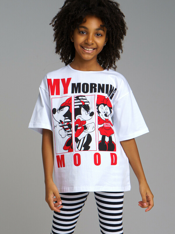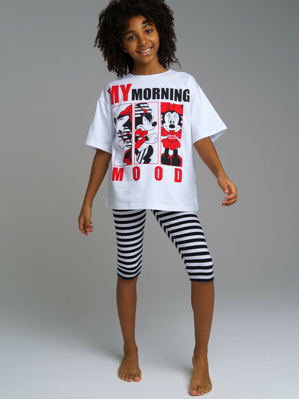 Комплект трикотажный для девочек: фуфайка (футболка), брюки (легинсы) (134, белый,Черный,красный)(PlayToday)