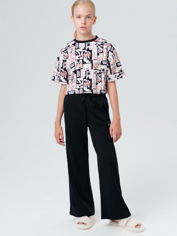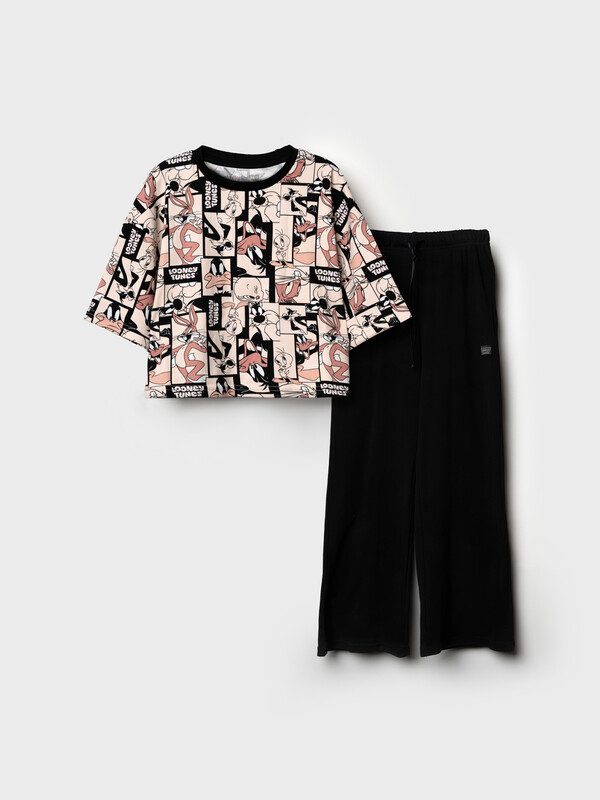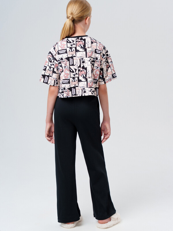 Комплект трикотажный для девочек: фуфайка (футболка), брюки (170, бежевый,черный)(PlayToday)