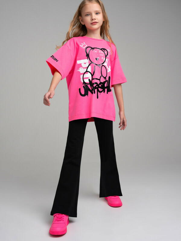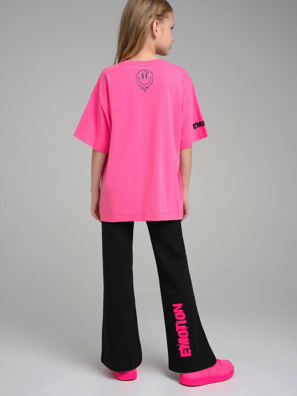Костюм для девочки подростка. Футболка оверсайз, брюки из эластичного и приятного на ощупь трикотажа джерси. Штаны на резинке. Высокое содержание хлопка. Модель выполнена из качественного и приятного на ощупь трикотажа.