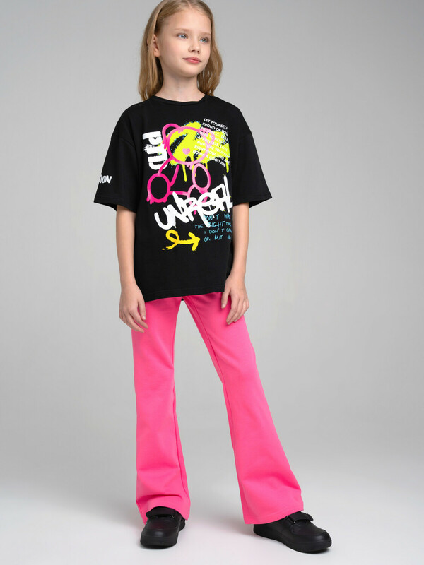 Костюм для девочки подростка. Футболка оверсайз, брюки из эластичного и приятного на ощупь трикотажа джерси. Штаны на резинке. Высокое содержание хлопка. Модель выполнена из качественного и приятного на ощупь трикотажа.