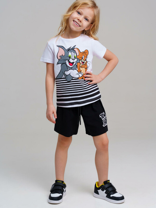 Костюм детский для девочки. Костюм детский для девочки. Футболка с высоким содержанием хлопка 95%. Благодаря наличию эластана в составе ткани изделие проще в уходе и держит форму. Шорты на резинке со шнурком. Модель выполнена из качественного и приятного на ощупь трикотажа.