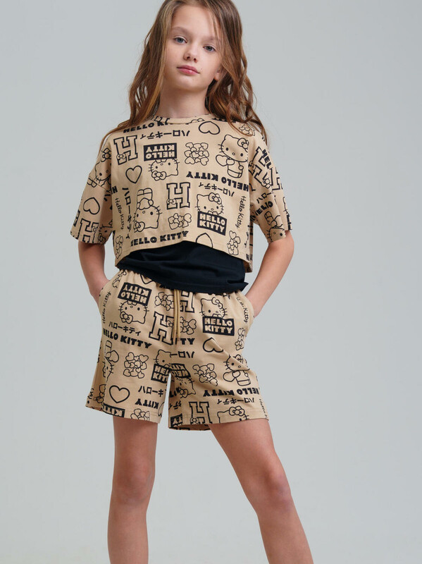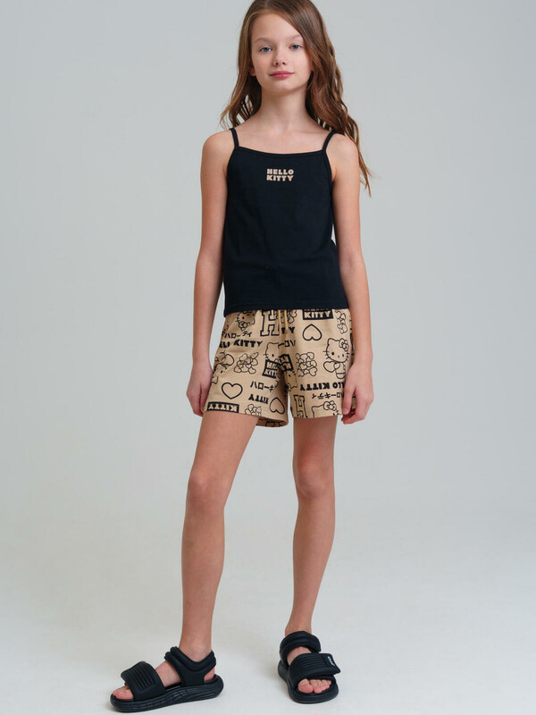 Костюм для девочки подростка. Укороченная футболка, майка, шорты из эластичного и приятного на ощупь трикотажа джерси. Шорты на резинке со шнурком. Функциональные боковые карманы. Высокое содержание хлопка 95%. Благодаря наличию эластана в составе ткани изделие держит форму и меньше мнется. Модель выполнена из качественного и приятного на ощупь трикотажа.