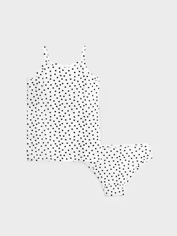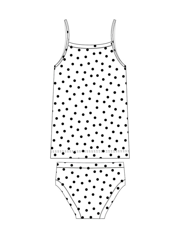 Комплект белья детский для девочки. Комплект белья: майка и трусы-слипы. Майка на тонких нерегулируемых бретелях. Высокое содержание хлопка. Благодаря наличию эластана в составе ткани изделие проще в уходе и держит форму.