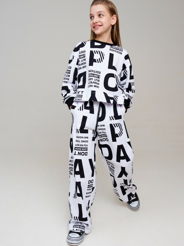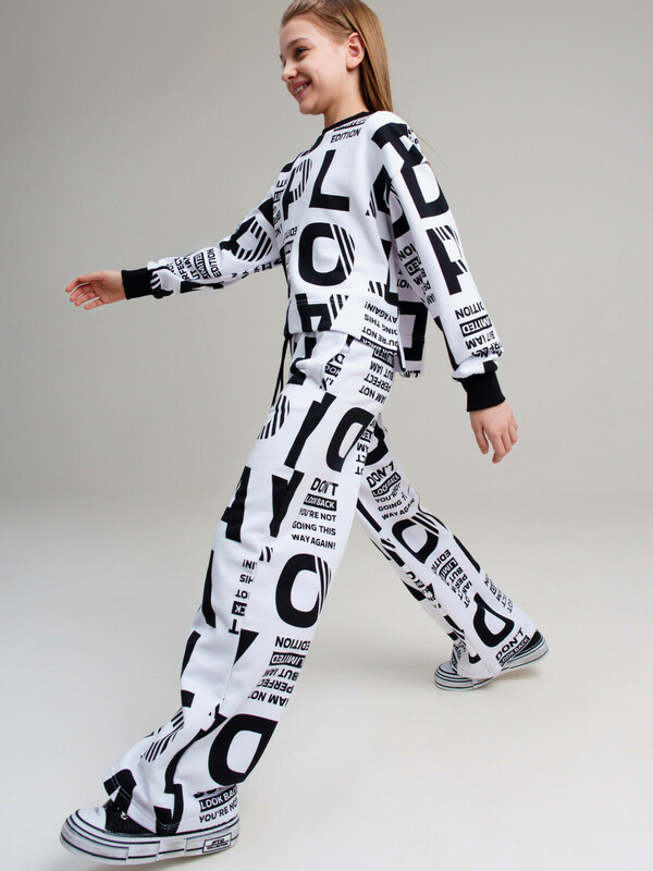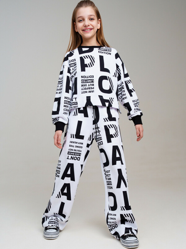 Костюм для девочки подростка. Свитшот, брюки с высоким содержанием хлопка. Брюки на резинке со шнурком. Функциональные боковые карманы. Модель выполнена из качественного и приятного на ощупь трикотажа.