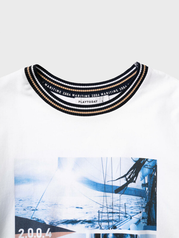 Мужской костюм. Состоит из футболки и шорт. Выполнен из хлопкового трикотажа. Футболка прямого кроя, с коротким рукавом. Яркий принт в морской тематике. Шорты свободные, с эластичным поясом и шнурком для регулировки посадки. Удобные боковые и накладные карманы-карго.