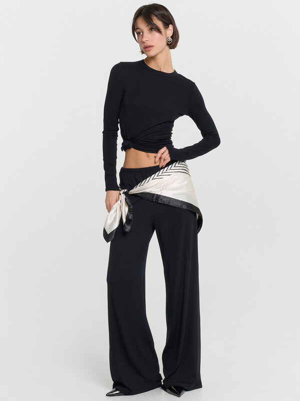 Женский комплект Mark Formelle— стильное и комфортное решение для летнего сезона. Лонгслив прилегающего силуэта мягко подчеркивает фигуру, а круглая горловина и длинные узкие рукава создают элегантный и минималистичный образ. Благодаря обработке нижних срезов швом вподгибку, изделие сохраняет аккуратный вид и долговечность. Прямые брюки свободного кроя идеально дополняют комплект, обеспечивая свободу движений и легкость в носке. Средняя посадка делает модель универсальной, а эластичная тесьма внутри пояса гарантирует комфортную фиксацию. Карманы в боковых швах, добавляют практичности и удобства. Изготовленный из эластичной вискозы, комплект дарит мягкость, воздухопроницаемость и приятное ощущение на коже. Идеальный вариант для расслабленных прогулок, работы или уютного отдыха в летний день!