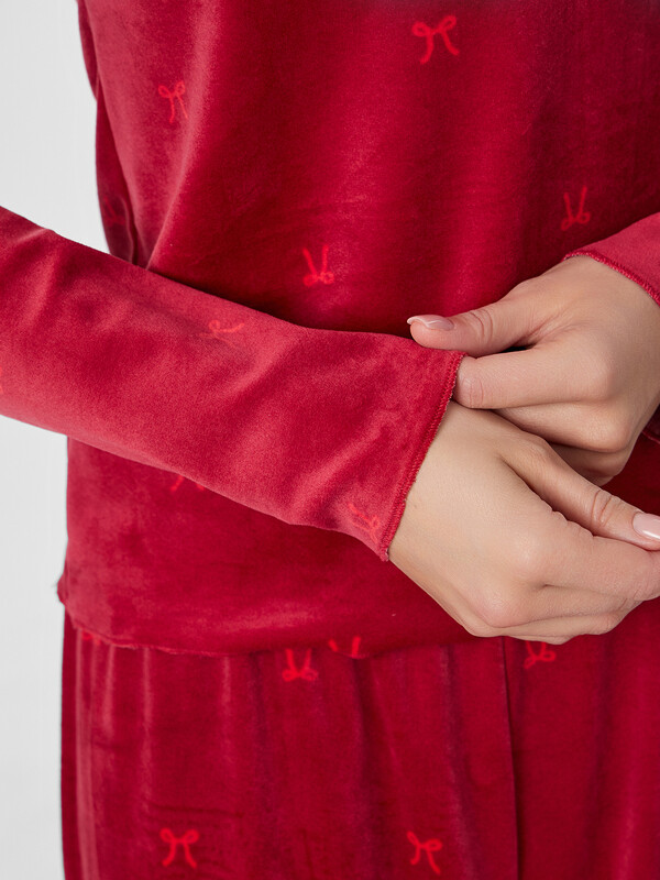 Этот комплект станет вашим любимым выбором для спокойных вечеров, утра в выходной день или моментов отдыха с чашкой горячего напитка. Насыщенный цвет добавляет образу яркости и ощущение праздника даже в обычной домашней обстановке.