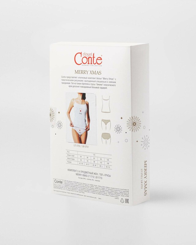 Комплект 2-х предметный женский топ и трусы из эластичного трикотажного полотна. Горловина и проймы топа окантованы эластичной тесьмой переходящей в нерегулируемые бретели. Талия и ножки в трусах обработаны эластичной тесьмой. По переду топа и трусов нанесен рисунок.
