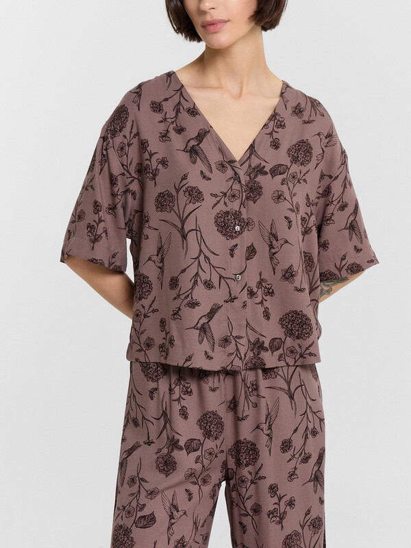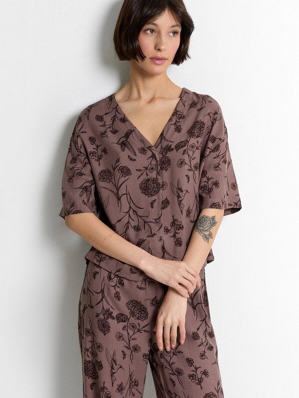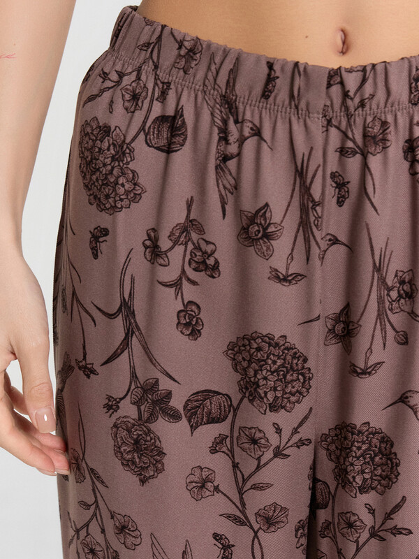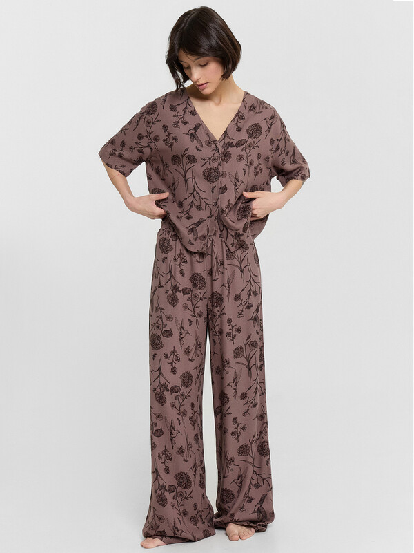 Нежная женская пижама выглядит очень элегантно и комфортно. Жакет свободного силуэта с короткими рукавами и застежкой на пуговицах создаёт легкий и расслабленный образ. А легкие брюки с эластичным поясом обеспечивают дополнительный комфорт и свободу движений. Изделие выполнено из нежнейшей и приятной к телу вискозы, которая дарит ощущение мягкости и комфорта на протяжении всего дня или ночи. Этот комплект идеален для тех, кто ценит качество и утонченность в домашней одежде.