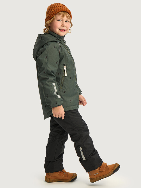 Костюм МОЛНИЯ с системой роста на один размер (длина рукавов и брючин увеличивается на 4-5см).Костюм из мембранной ткани 5000/5000 с водо- грязеотталкивающей технологией TEFLON.Мембранная ткань - это непродуваемый и водонепроницаемый материал, который надежно защищает от ветра и влаги. Благодаря дышащим свойствам мембраны ребенку будет комфортно в любую погоду и он не вспотеет. Ткань обработана снаружи экологически чистым протектором TEFLON для защиты от воды и грязи .Мембрана в сочетании с утеплителем нового поколения FIBERlite сохраняет тепло во время прогулок, позволяя телу дышать. Флисовая подкладка отводит влагу и имеет хорошие теплоизоляционные свойства. Функционал: - центральная застежка и карманы на молнии, - ветрозащитная планка, - капюшон с кулисой для регулировки объема, - манжеты на резинке, - внутренняя сторона манжета из флиса, - внутренние бретели для возможности снять куртку в помещении. Мы все продумали до мелочей, поэтому полукомбинезон дополнительно оснащен:- регулируемыми бретелями, - удобными карманами, - снегозащитными муфтами, - силиконовыми штрипками, - светоотражающими элементами для безопасности ребенка в темное время суток.Область колен и шов сидения проклеены.В костюме предусмотрена СИСТЕМА РОСТА. Удлинить рукава и штанины можно, удалив строчку на подкладке и костюм подрастет вместе с ребенком.Комфортная температура эксплуатации от -5°С до +10°С. Рекомендуем приобрести комплектом аксессуары, обувь и другие вещи из капсулы в карточке товара, которые отлично сочетаются с изделиями коллекции.