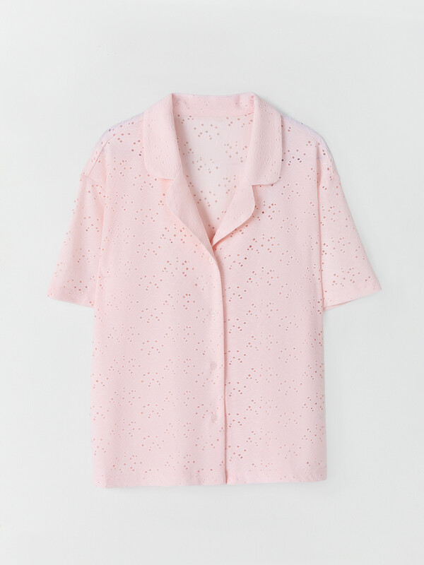 Борта обработаны подбортами. Рукава втачные короткие. Центральная застежка на петли и