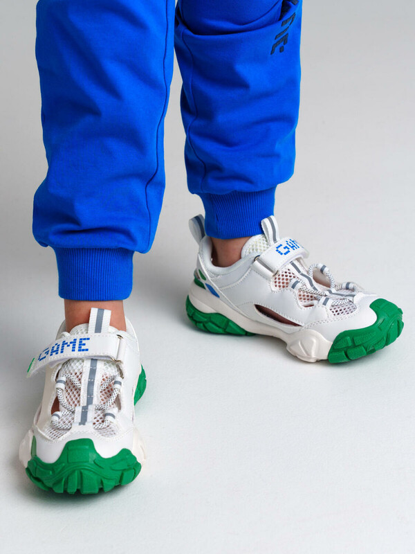 Кроссовки из дышащих материалов. Кожаная профилированная стелька с анатомической формой обеспечивает правильную нагрузку на стопу. Эластичные шнурки и липучка создают удобство при обувании и надежно фиксируют ногу. Эргономичная форма колодки обеспечивает правильное формирование стопы ребенка. Легкая и гибкая подошва из терморезины имеет дополнительную защиту носочной части.