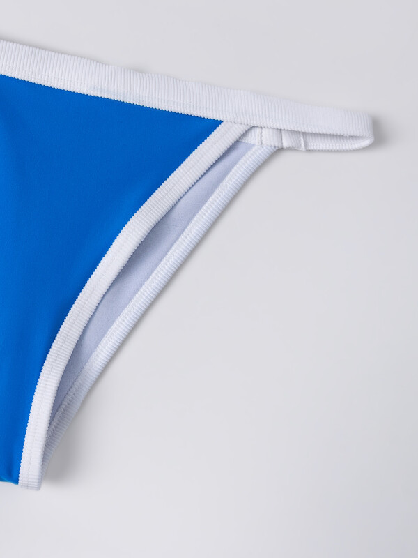 Раздельный купальник без застежек – на завязках. Чашки без косточек, с формованными вкладышами и декоративными складочками. Трусы с заниженной линией талии, также на завязках. Полотно идеально подходит для пляжа, солнца и воды!