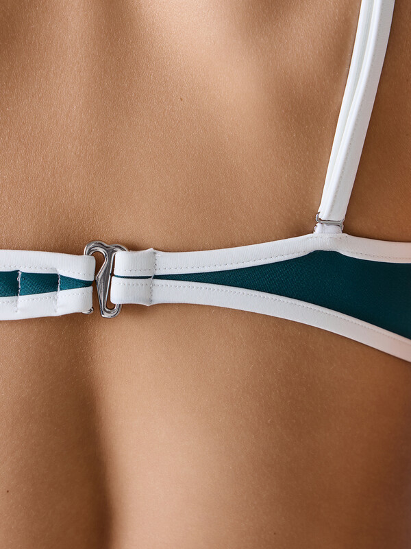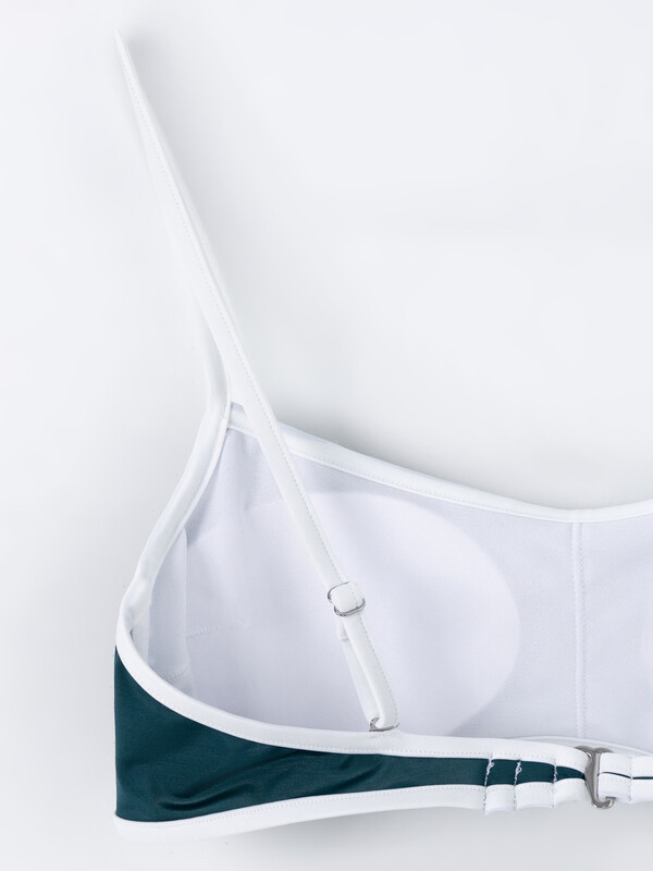 Женский раздельный купальник из пляжной коллекции Mark Formelle - сочетание элегантности, комфорта и функциональности. Топ выполнен из гладкой микрофибры и имеет горизонтальные вытачки от боковых швов, обеспечивая идеальную посадку и поддержку. Лиф на подкладке из двух слоев с чашками-вкладышами дарит комфорт и уверенность при носке. Окантовка горловины и нижнего среза выполнена из контрастной бейки, добавляя стильный акцент. Бретели с регулировкой длины обеспечивают удобную посадку, а металлические регуляторы и крючки-застежки с гальваническим покрытием гарантируют прочность и долговечность. Трусы-слипы имеют среднюю линию талии и также выполнены из гладкой микрофибры на подкладке. Их цельный крой обеспечивает комфортное прилегание, а эластичная тесьма в окантовке верхнего и нижнего срезов дарит дополнительное удобство. Такой купальник - стильный выбор для пляжного отдыха, обеспечивающий максимальный комфорт и уверенность в каждой детали!