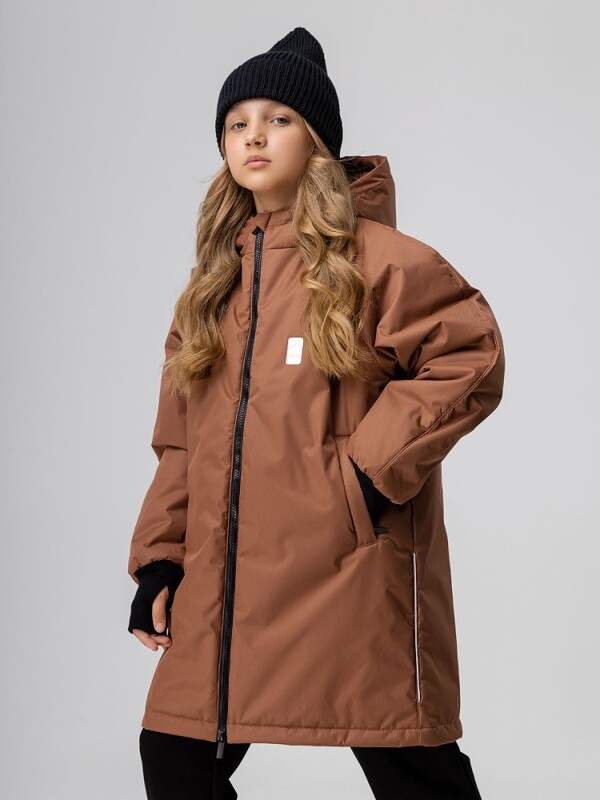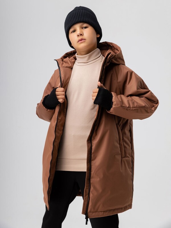 Пальто для детей школьного возраста. Пальто утеплённое на подкладке, прямого силуэта, с центральной застёжкой на тесьму -молния. Пальто с рукавами реглан с притачной удлинённой манжетой с отверстием под палец. Капюшон со вставкой и с цельнокроеной стойкой. На полочке расположены карманы листочки с молнией. Материал верха: мембранная ткань 100% полиэстер, утеплитель Hetta micro 150 г/кв.м, утеплитель в капюшоне Hetta micro 100 г/кв.м, подкладочный материал флис 100% полиэстер. Мембрана 3000 мм/3000 г/кв.м, флис 130 гр. Температурный режим от 0 до -10 градусов, в зависимости от индивидуального теплообмена.
