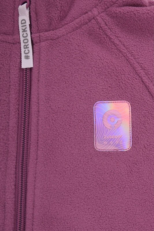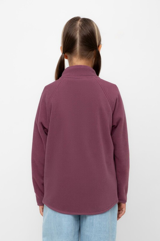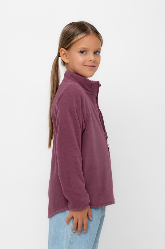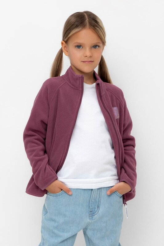 Флисовая куртка для девочки. У изделия удлинённая спинка, высокий воротник, предусмотрена защита шеи и подбородка. Рукава-реглан и низ изделия обработаны эластичным кантом для лучшего прилегания к телу, по бокам два кармана. Куртка сохраняет цвет и форму после многократных стирок.