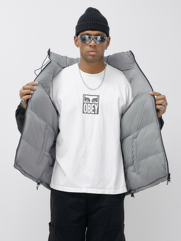 - Двусторонний дизайн: Позвольте себе разнообразие! Одна сторона куртки выполнена из плащевой ткани с стеганой фактурой, а другая — из плотной мембранной ткани, что позволяет вам менять стиль в зависимости от настроения и погодных условий.