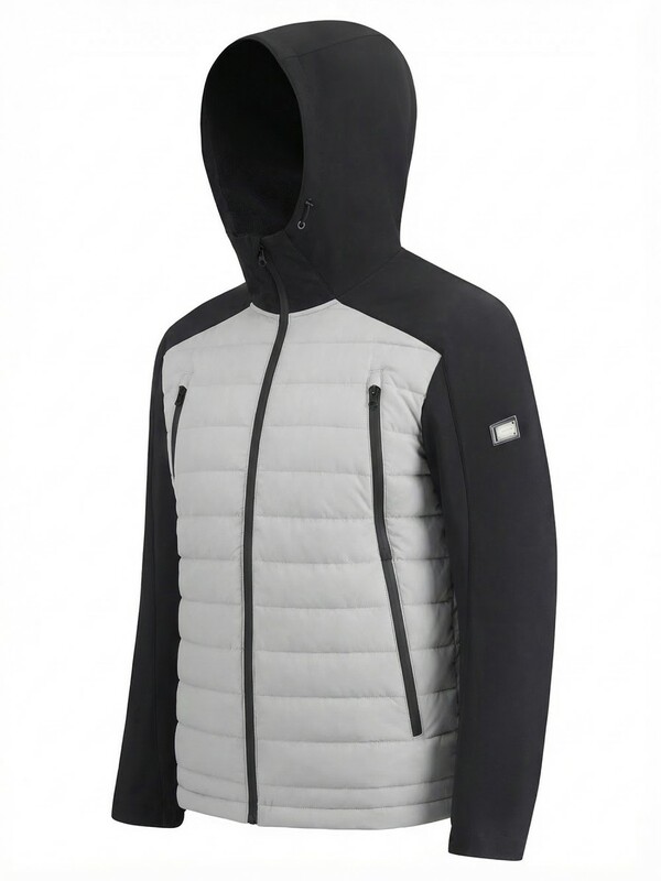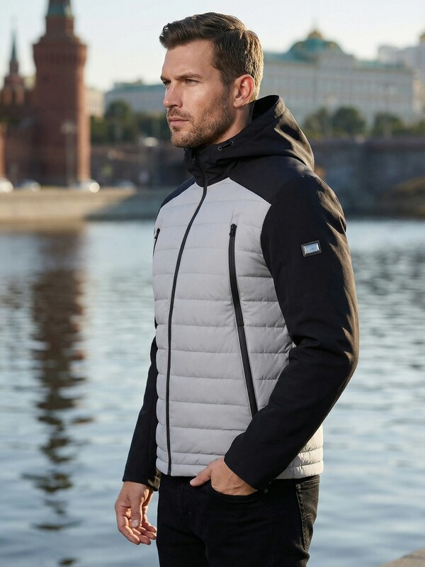 Современная мужская куртка гибридного типа сочетает в себе технологичную стёганую конструкцию и эластичные вставки из софтшелл-материала. Такая комбинация обеспечивает комфорт, свободу движения и оптимальную защиту от ветра и прохладной погоды.