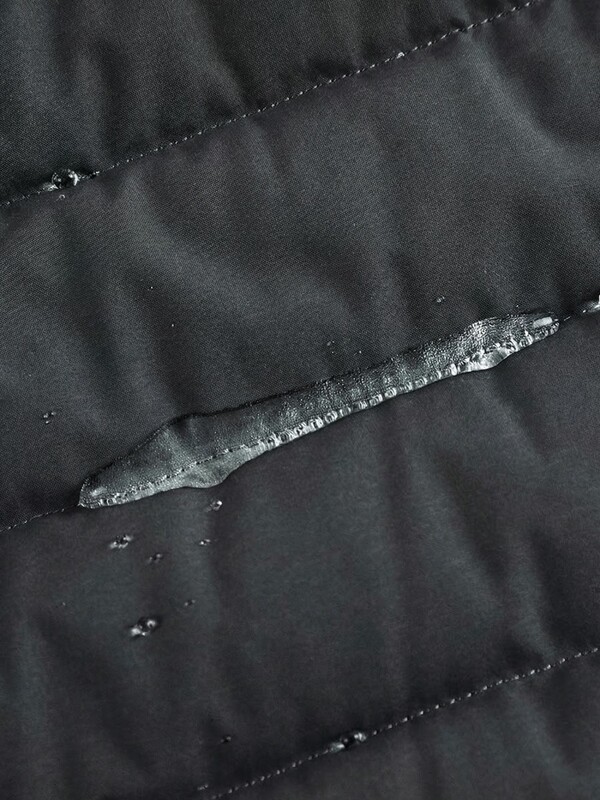 Передняя и задняя часть куртки выполнены в виде лёгкой стёганой конструкции с утеплителем нового поколения, который хорошо сохраняет тепло и при этом остаётся лёгким и компактным. Боковые панели и рукава изготовлены из софтшелл-материала — он эластичный, дышащий и защищает от ветра и дождя поэтому куртка отлично подходит для активного городского ритма.