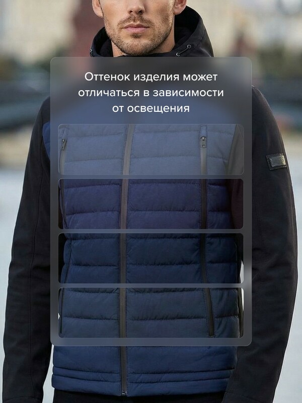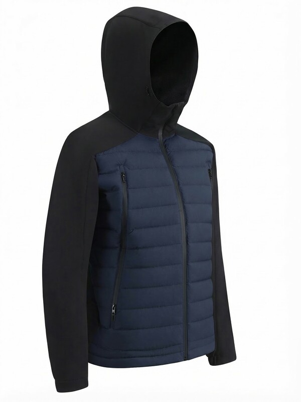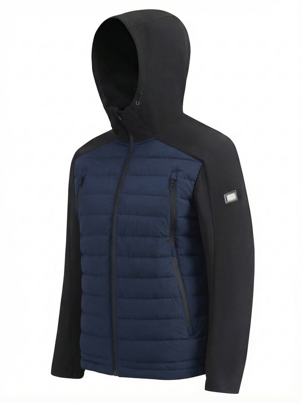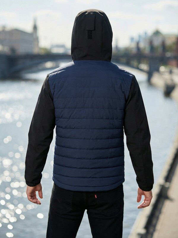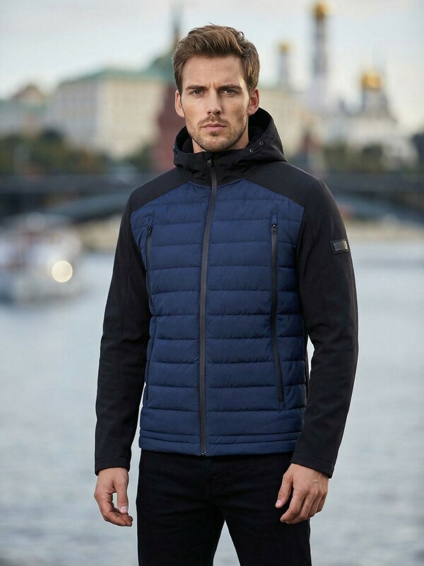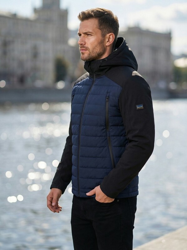 Современная мужская куртка гибридного типа сочетает в себе технологичную стёганую конструкцию и эластичные вставки из софтшелл-материала. Такая комбинация обеспечивает комфорт, свободу движения и оптимальную защиту от ветра и прохладной погоды.