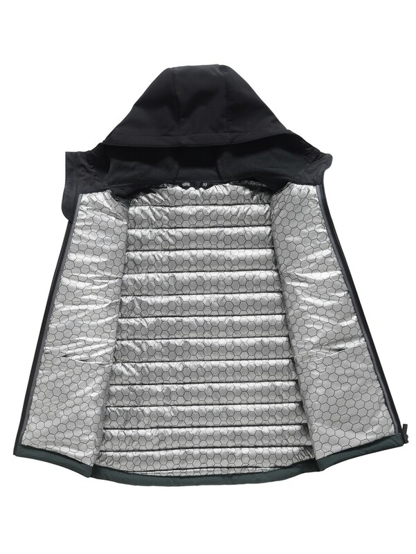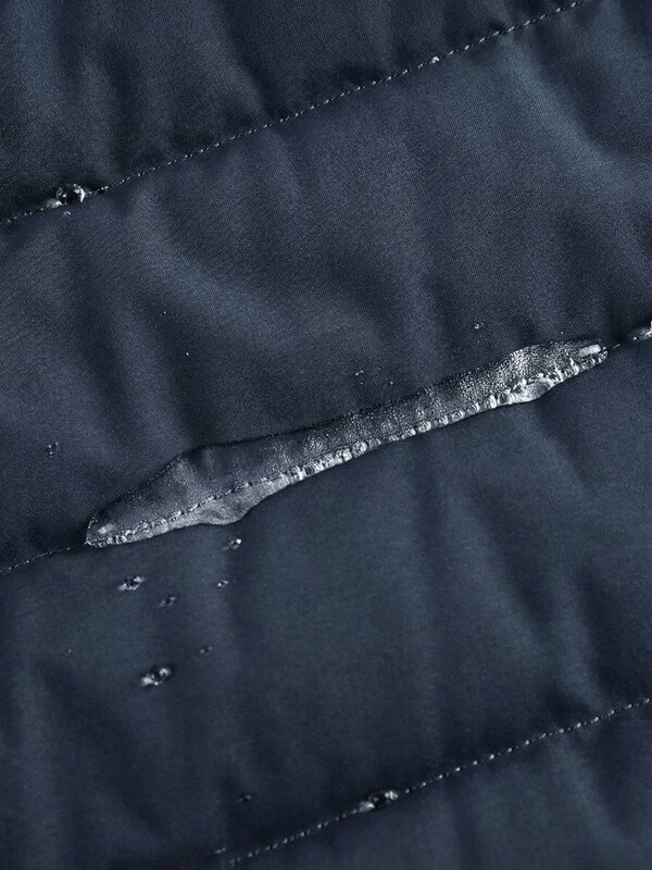 Передняя и задняя часть куртки выполнены в виде лёгкой стёганой конструкции с утеплителем нового поколения, который хорошо сохраняет тепло и при этом остаётся лёгким и компактным. Боковые панели и рукава изготовлены из софтшелл-материала — он эластичный, дышащий и защищает от ветра и дождя поэтому куртка отлично подходит для активного городского ритма.