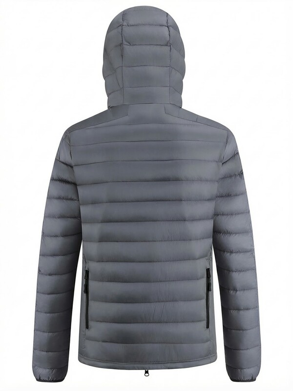 Главная страница - Каталог - Мужская одежда - Мужская верхняя одежда - Мужская верхняя одежда весна-осень - Куртка мужская гибридная стёганая с капюшоном с графеновой подкладкой темно-серого цвета 9621_1TC