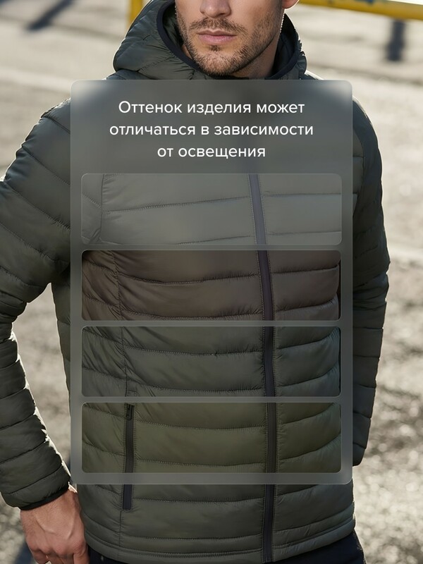 Главная страница - Каталог - Мужская одежда - Мужская верхняя одежда - Мужская верхняя одежда весна-осень - Куртка мужская гибридная стёганая с капюшоном с графеновой подкладкой цвета хаки 9621_1Kh