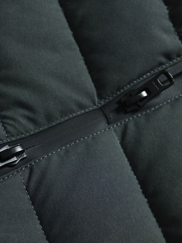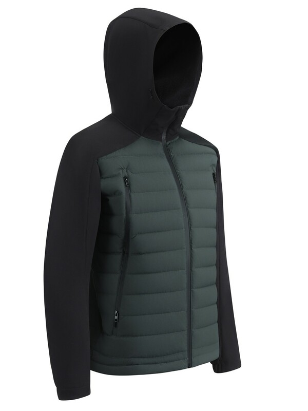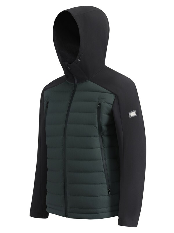 Передняя и задняя часть куртки выполнены в виде лёгкой стёганой конструкции с утеплителем нового поколения, который хорошо сохраняет тепло и при этом остаётся лёгким и компактным. Боковые панели и рукава изготовлены из софтшелл-материала — он эластичный, дышащий и защищает от ветра и дождя поэтому куртка отлично подходит для активного городского ритма.