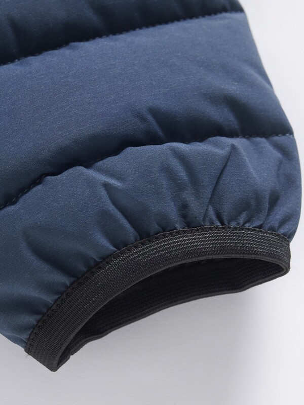 Верх выполнен из прочной износостойкой ткани с водоотталкивающей обработкой, которая защищает от ветра и лёгких осадков. Лёгкий утеплитель помогает сохранять тепло и обеспечивает комфорт при небольшой толщине изделия.