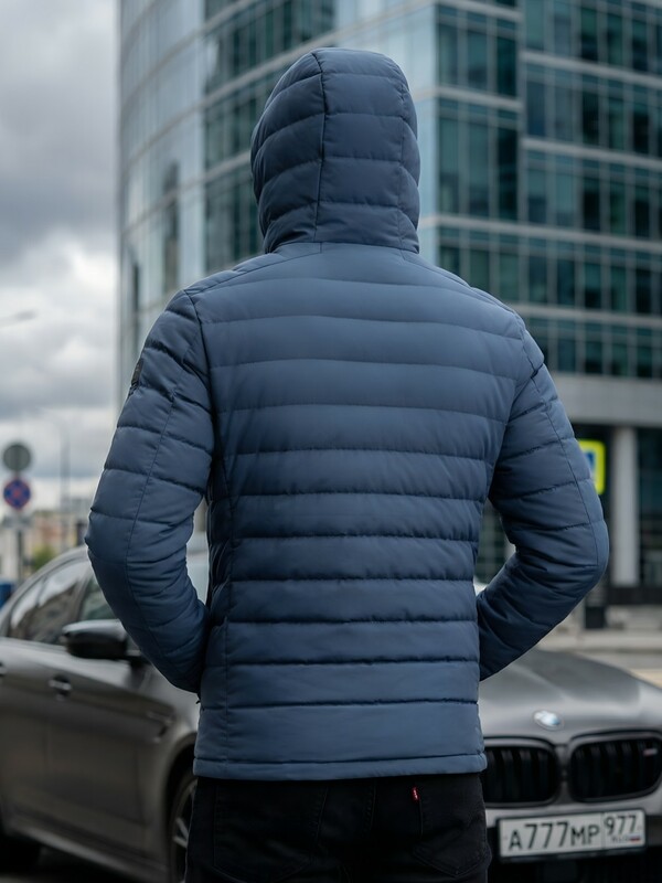 Главная страница - Каталог - Мужская одежда - Мужская верхняя одежда - Мужская верхняя одежда весна-осень - Куртка мужская стёганая с капюшоном с графеновой подкладкой синего цвета 9623_1S