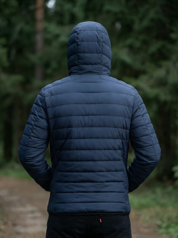 Главная страница - Каталог - Мужская одежда - Мужская верхняя одежда - Мужская верхняя одежда весна-осень - Куртка мужская стёганая с капюшоном с графеновой подкладкой темно-синего цвета 9625_1TS