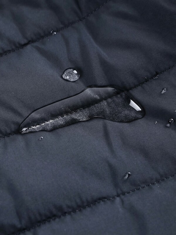 Верх выполнен из прочного водоотталкивающего материала, который защищает от влаги и ветра, помогая сохранять комфорт даже в переменчивую погоду. Капли воды не впитываются в ткань и легко скатываются с поверхности, что делает куртку практичной для ежедневной носки.