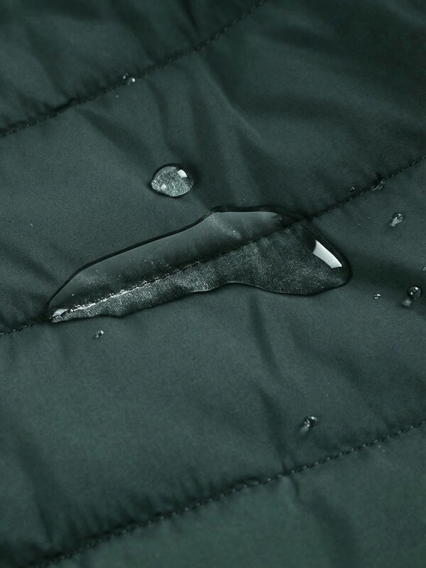 Верх выполнен из прочного водоотталкивающего материала, который защищает от влаги и ветра, помогая сохранять комфорт даже в переменчивую погоду. Капли воды не впитываются в ткань и легко скатываются с поверхности, что делает куртку практичной для ежедневной носки.