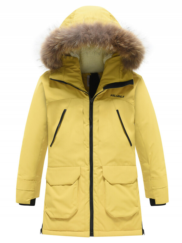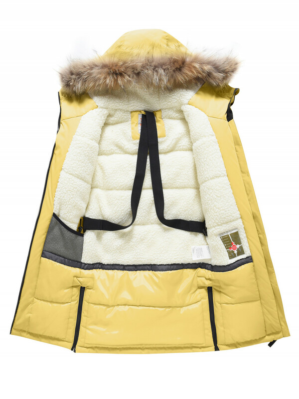 Главная страница - Каталог - Одежда для девочек - Верхняя одежда для девочек - Верхняя одежда Осень-Зима для девочек - Куртка парка зимняя подростковая для девочки с капюшоном и мехом желтого цвета 9448J