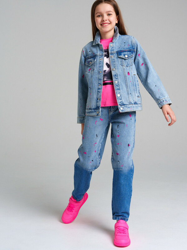 Куртка джинсовая из эластичного денима. Свободная посадка. Средняя длина. Застежка на болты. Функциональные карманы.