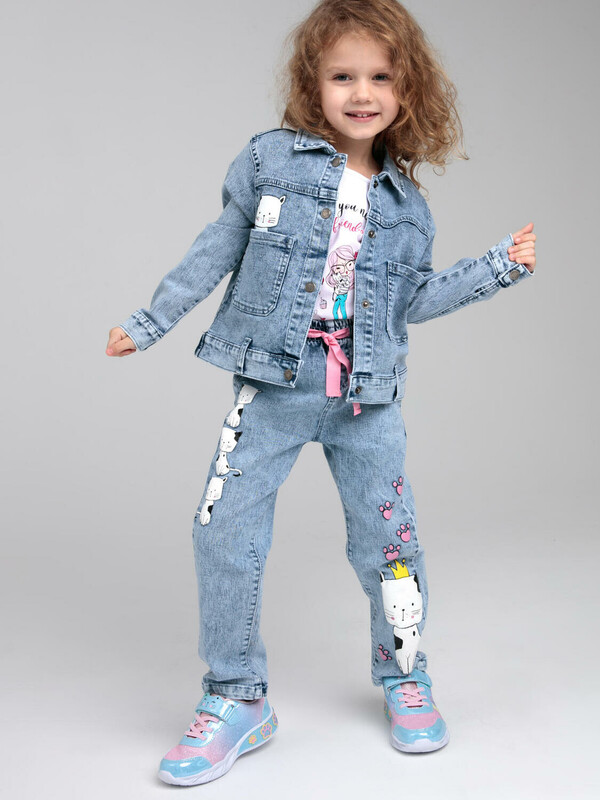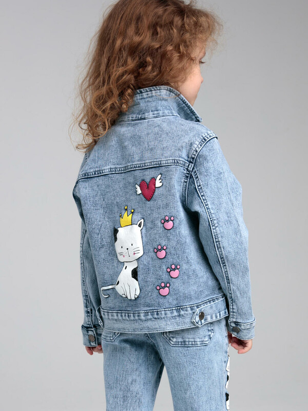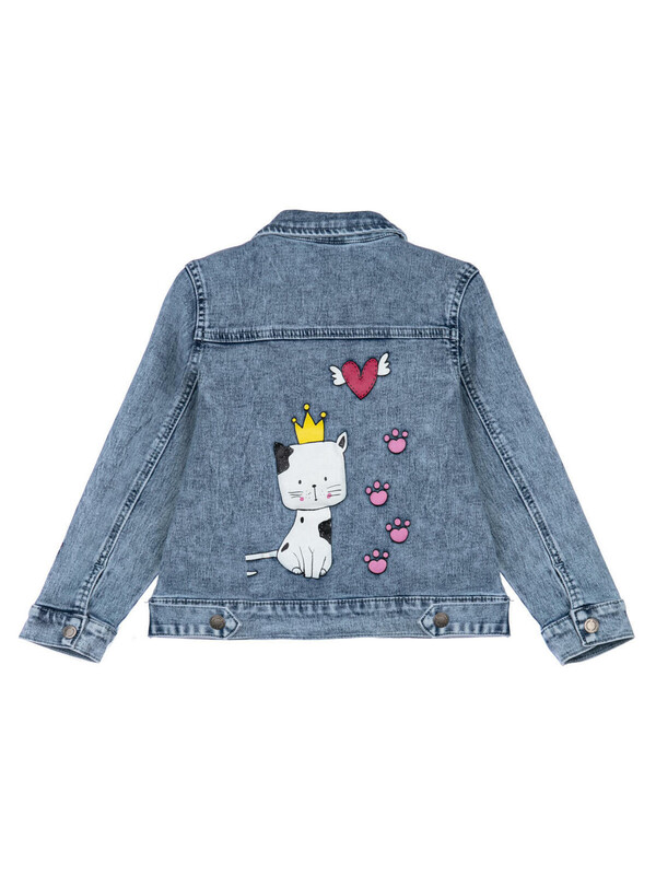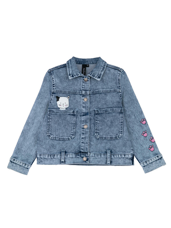 Куртка джинсовая из эластичного денима. Классическая посадка. Средняя длина. Застежка на кнопки.