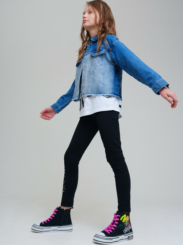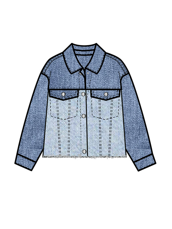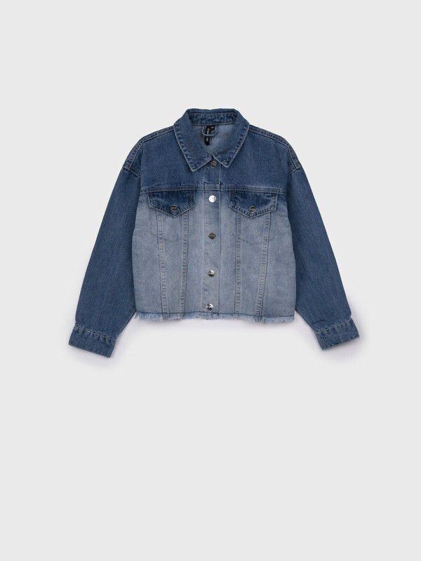 Куртка джинсовая oversize из эластичного денима. Свободная посадка. Застежка на болты. Функциональные карманы.