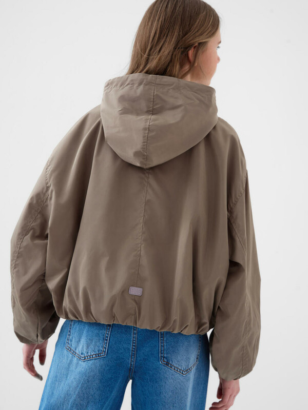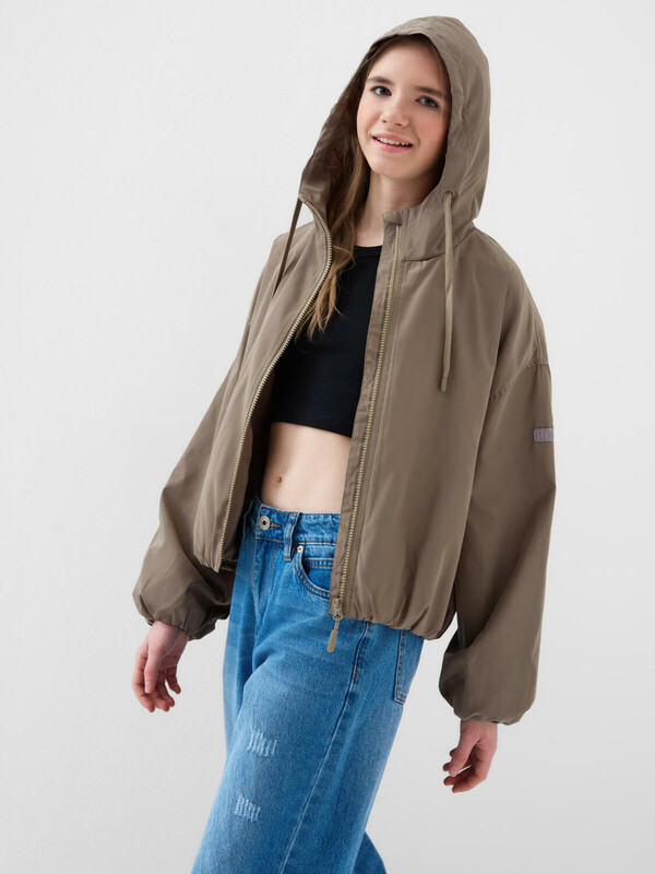 Оверсайз ветровка для девочки подростка. Температурный режим от +20С до +10С. Ткань с ветрозащитным и водоотталкивающим покрытием. Внутри гладкая подкладка. Капюшон несъемный с утяжкой шнуром. По бокам расположены два удобных прорезных кармана. Низ изделия и рукава собраны на резинку, что помогает лучше сохранять форму и защищает от ветра. Декоративные светоотражающие элементы добавлены на рукаве и спинке для дополнительной безопасности в тёмное время суток.