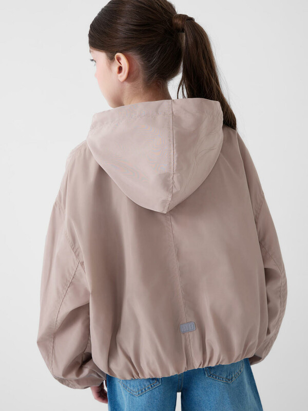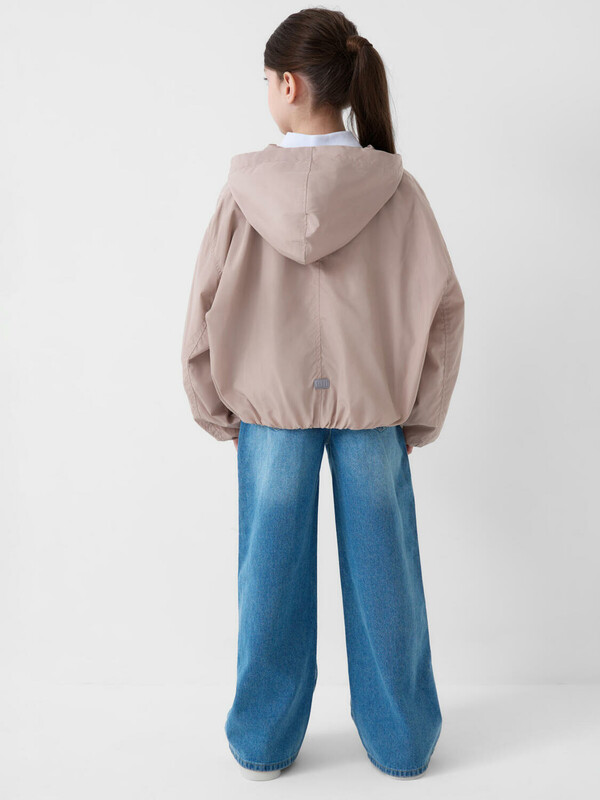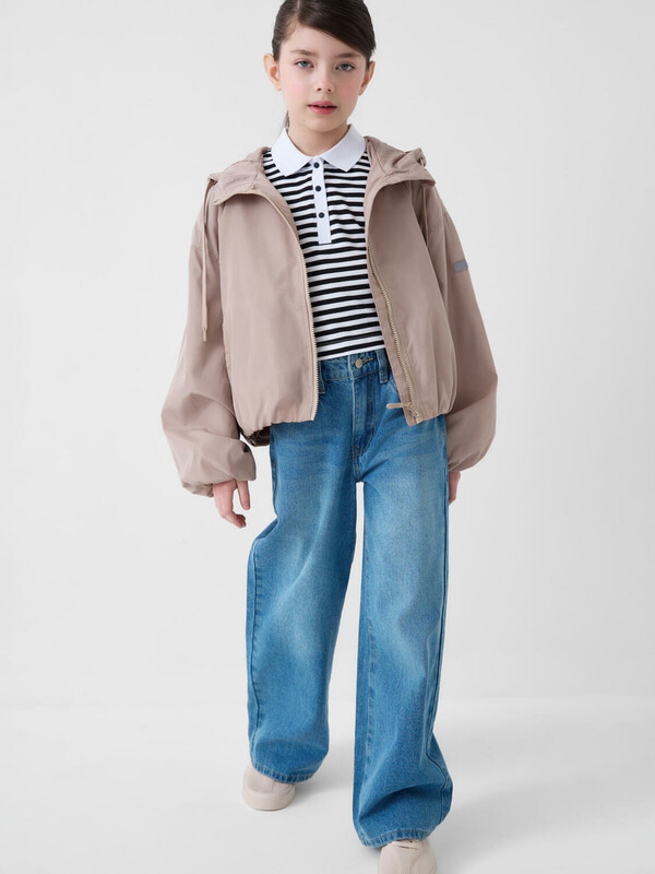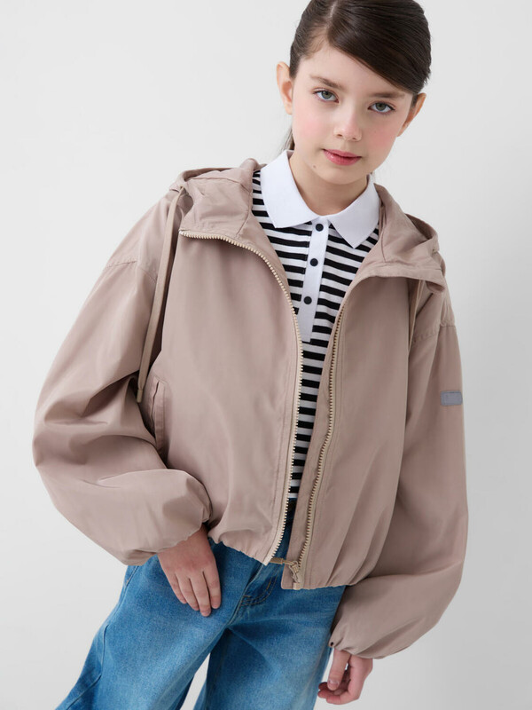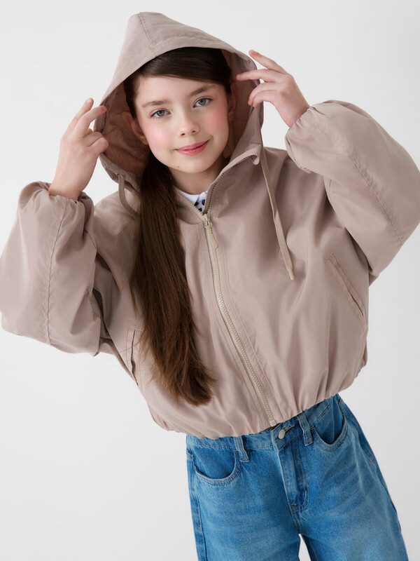 Ветровка оверсайз для девочки подростка. Температурный режим от +20С до +10С. Ткань с ветрозащитным и водоотталкивающим покрытием. Внутри гладкая подкладка. Капюшон несъемный, регулируется шнуром. Спереди расположены два кармана на молнии. По низу и на манжетах — мягкие резинки для комфортной посадки. Сзади и на рукаве есть светоотражающие ярлычки для безопасности в темное время суток.