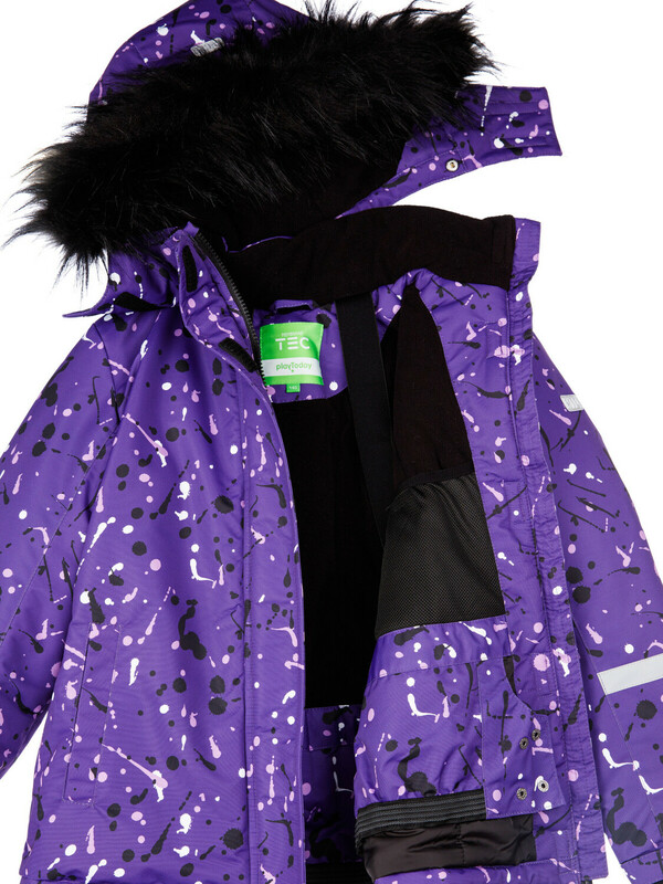 Мембранный материал делает этот яркий и модный комбинезон непромокаемым: мембрана не пропускает влагу снаружи, но выводит её изнутри, что крайне важно во время подвижных игр и занятий спортом.