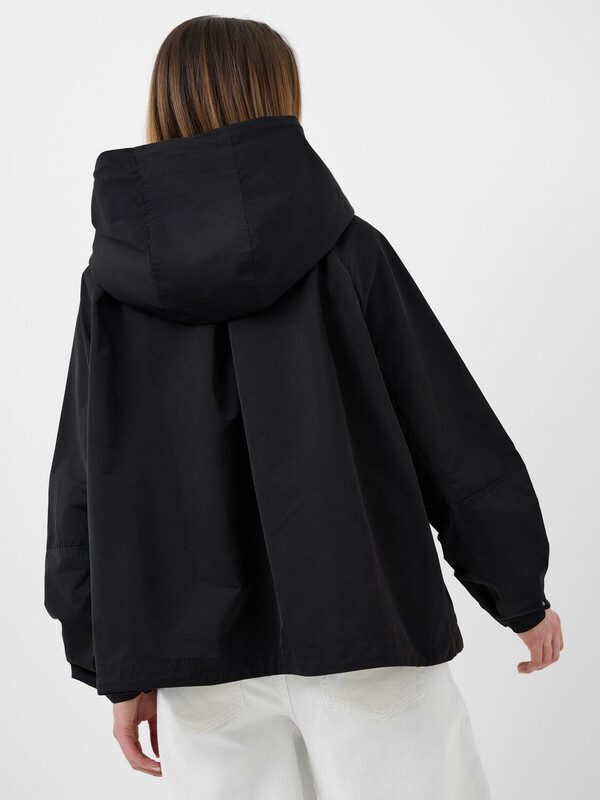 Женская ветровка оверсайз. Температурный режим от +10 до +20С. Ткань с ветрозащитным и водоотталкивающим покрытием. Застежка на молнию, закрытую ветрозащитной планкой на кнопках. Капюшон с регулировкой шнуром. Рукава с регулируемой шириной на манжете благодаря кнопкам. Два боковых кармана. Низ изделия регулируется стопперами.