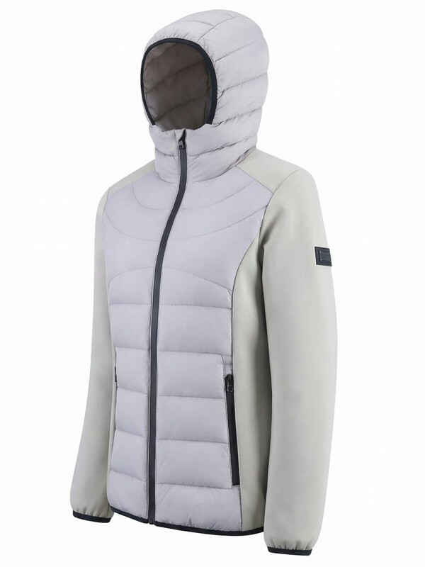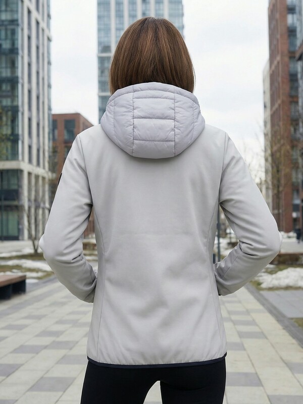 Рукава и боковые части выполнены из эластичного материала софтшелл, который защищает от ветра, хорошо тянется и обеспечивает свободу движения. Благодаря этому куртка удобно сидит по фигуре и подходит как для активного образа жизни, так и для повседневной носки.